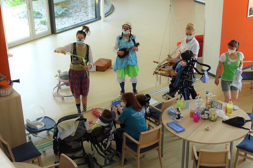 Die Klinikclowns von Lachen hilft e.V. waren im Kinderhaus zu Gast und die Laune ist bei ihrem lustigen Programm gestiegen.