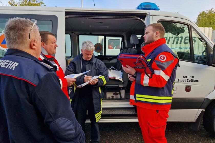 Gemeinsame Einsatzübung auf dem früheren Flugplatzgelände im Cottbuser Norden