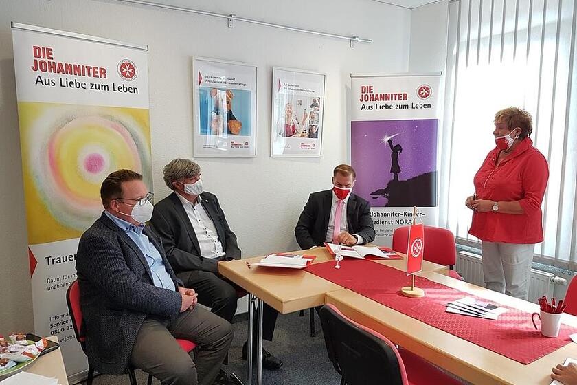 Am heutigen Mittwoch besiegelten Dirk Rommel (geschäftsührender Vorstand der ARIKON Bau AG), Dierk Homeyer (Leiter Unternehmensentwicklung der ARIKON Bau AG), Elisabeth Alter und Uwe Kleiner (Mitglieder des Regionalvorstandes der Johanniter-Unfall-Hilfe e. V.) sowie Eileen Samol (Fachbereichsleiterin Hospizdienste der Johanniter-Unfall-Hilfe e. V.) die Unternehmenspatenschaft für den ambulanten Kinderhospizdienst NORA.