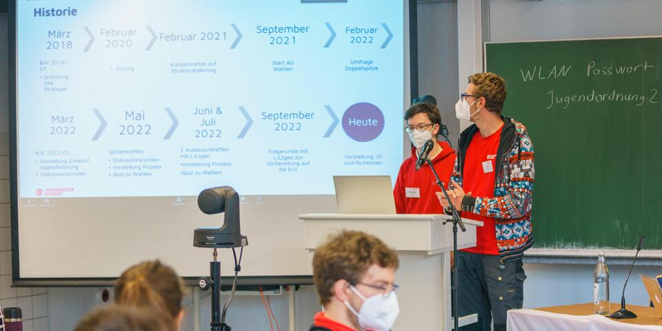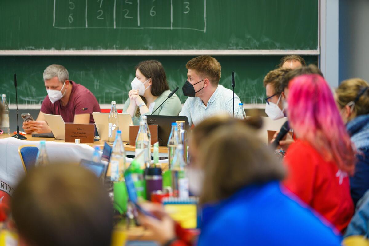 Im Versammlungsverlauf am Vor- und Nachmittag hatten die Mitglieder der Bundesjugendversammlung immer wieder die Möglichkeiten im Plenum oder in Kleingruppen zu diskutieren, Änderungsanträge zu stellen und Kompromisse für umstrittene Themen zu finden. Neben Markus Walper, Bundesjugendleiter, der zu dem Zeitpunkt die Sitzungsleitung inne hatte, unterstütze Konstantin Schmidt aus dem LV Nord die Sitzungsleitung als neutraler Moderator und führte die Teilnehmenden durch die komplexen Diskussionen.