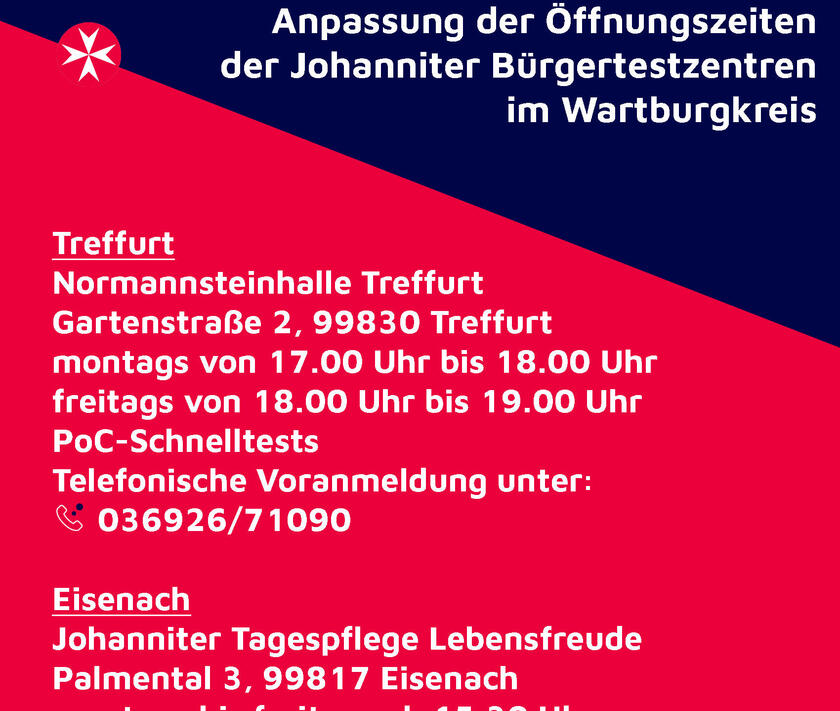 Wir haben unsere Zeiten für die Bürgertestzentren im Wartburgkreis angepasst.