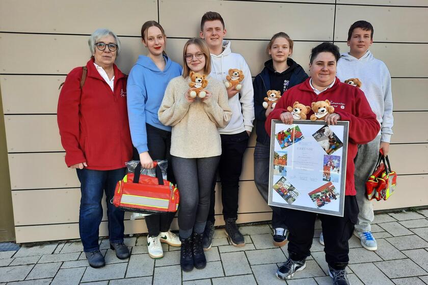 Für die prima Leistungen überreichten die Johanniter-Gruppenleiterinnen Christa und Chrissy nun eine Fotocollage als Erinnerung und neue Ersthelfertaschen für den Einsatz im Schulalltag.
