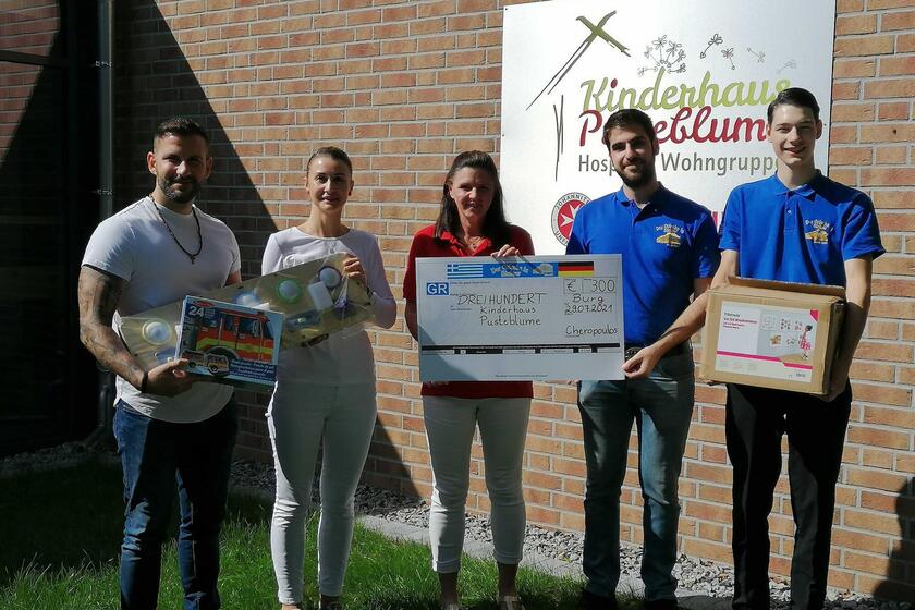 Der "Grieche in Sielow" stiftete neue Wandspiele für das Kinderhaus Pusteblume.