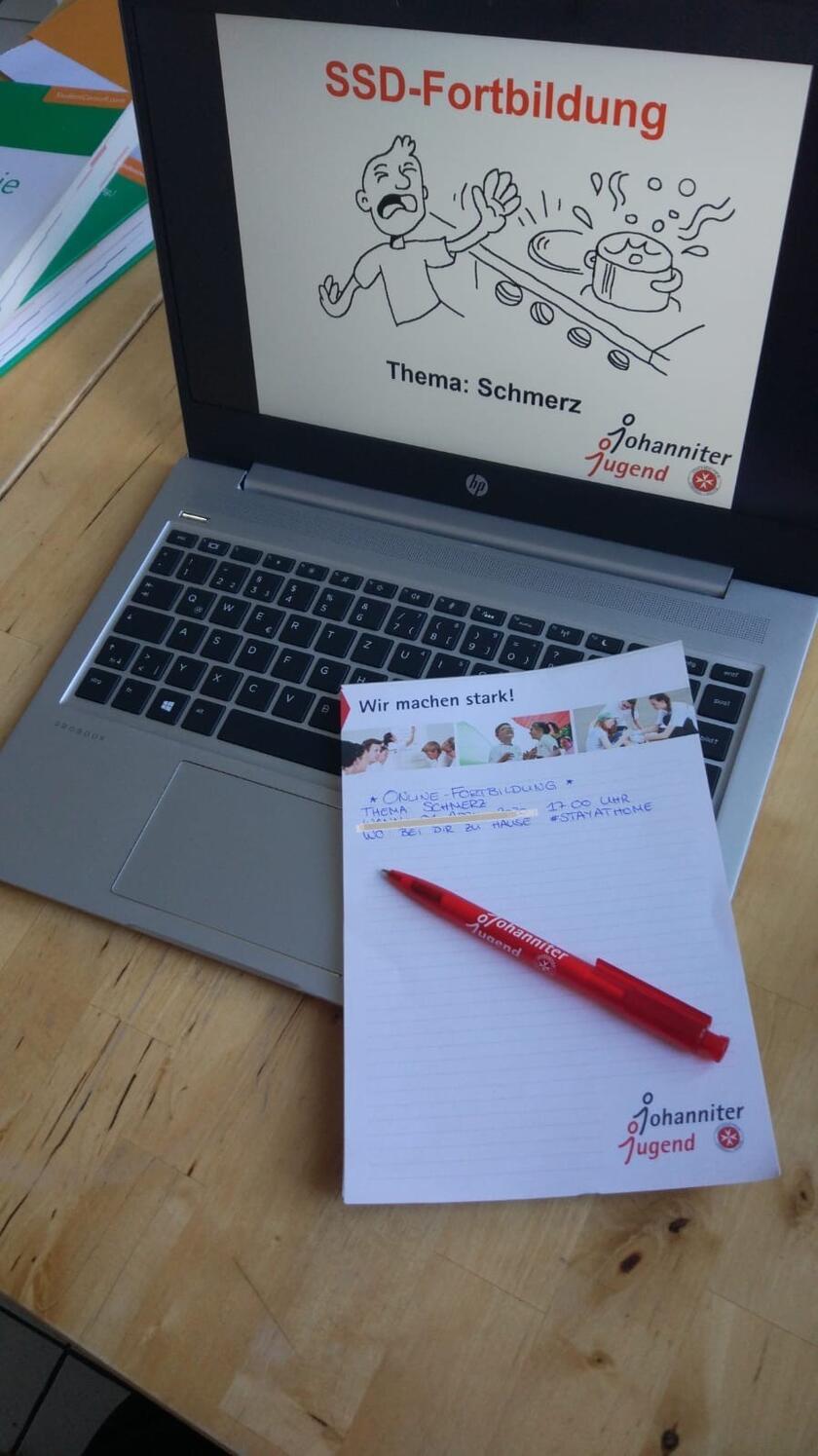 Aufgrund der bestehenden aktuellen Einschränkungen finden keine gemeinsamen Präsenz-Fortbildungen statt. Auch die Schulungen für die Johanniter-Schulsanitäter sind davon betrof-fen. Daher wurden diese kurzerhand in die Wohn- und Kinderzimmer der Schülerinnen und Schüler verlegt.