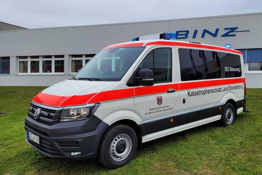 Heute durften wir in Ilmenau bei der BINZ Ambulance- und Umwelttechnik GmbH den neuen Mannschaftstransportwagen (MTW) Betreuung für die SEG (Schnelleinsatzgruppe) in Lübben (Dahme-Spreewald) abholen. Auf Basis eines VW Crafter erfolgte der umfangreiche Umbau zum modernen Einsatzfahrzeug mit komplexer Technik und einem effizientem Stauraumkonzept. In der Heimat erhält das Fahrzeug jetzt noch die Digitalfunkausstattung und eine ergänzende Beklebung. Wir wünschen allzeit gute Fahrt und sichere Einsätze!