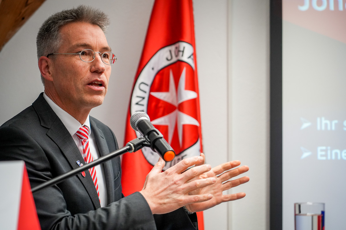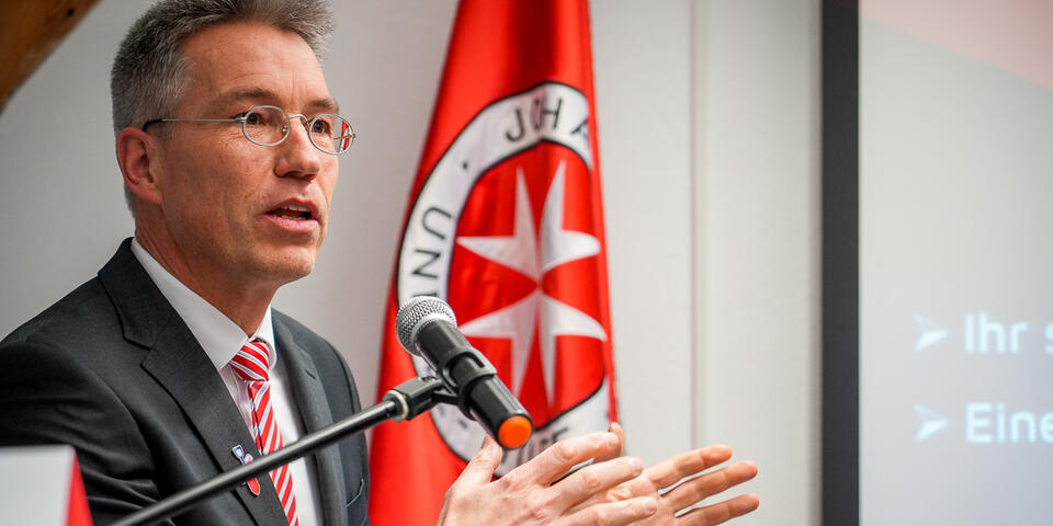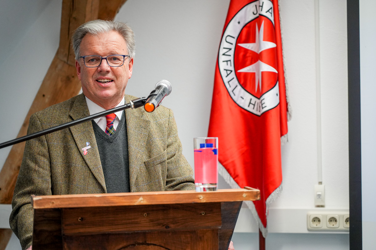 Wasserburgs Bürgermeister Michael Kölbl zeigte sich erfreut, dass die Heimat der Johanniter auch in Zukunft Wasserburg sein wird - auch mit neuem Verbandsnamen. Denn „als Bürger weiß ich, dass wir euch hier bei uns brauchen und als Bürgermeister sage ich, dass wir euch hier wollen.“