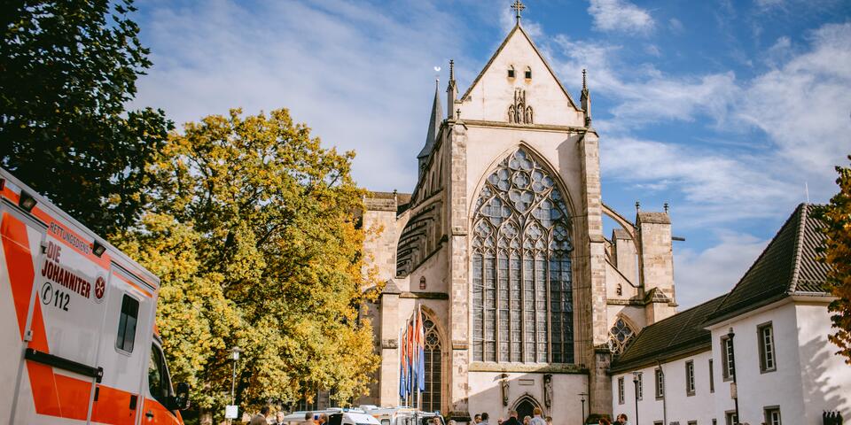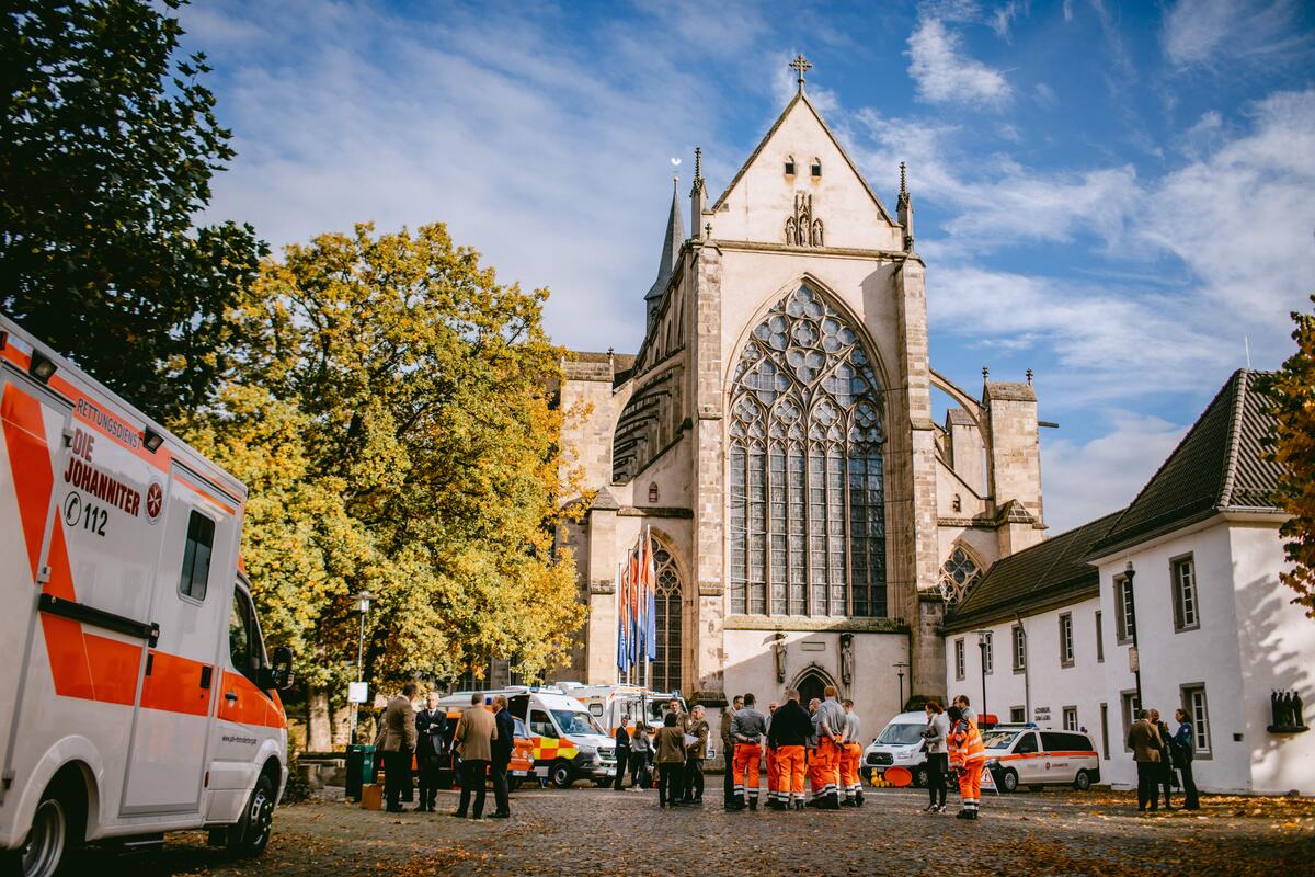 Mit einem feierlichen Gottesdienst im Altenberger Dom sind Matthias Cramer und Udo Schröder-Hörster am 21. Oktober offiziell als neue Landesvorstände der Johanniter-Unfall-Hilfe (JUH) eingeführt worden. Der 54-jährige Jurist und 55-jährige Sozialbetriebswirt führen den größten Landesverband der christlichen Hilfsorganisation gemeinsam als ehren- und hauptamtliches Mitglied des Landesvorstandes.