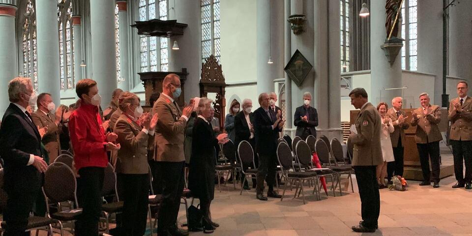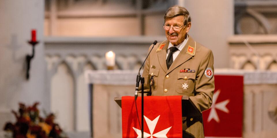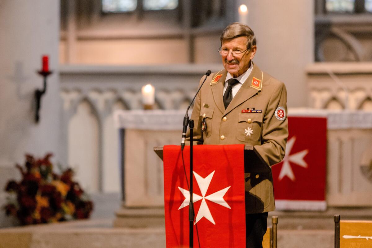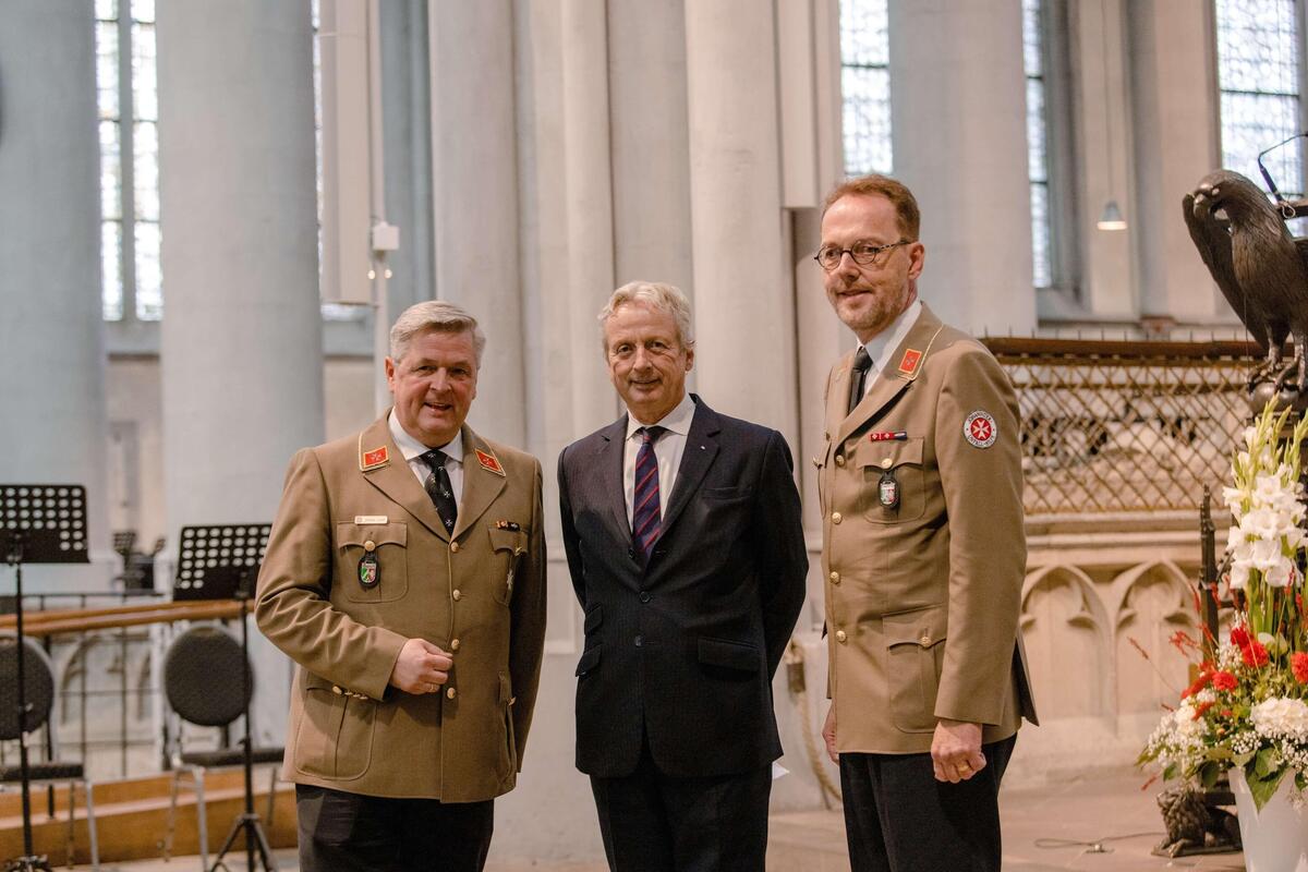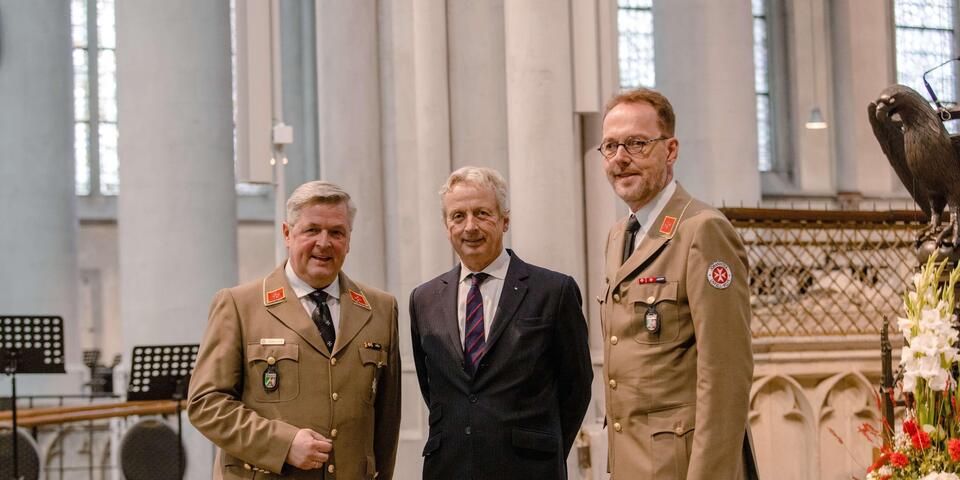 Bundesvorstand Christian Meyer-Landrut begrüßte die rund einhundert geladenen Gäste im Anschluss an den Gottesdienst. Er wünschte den neuen Landesvorständen mit dem so genannten „Gelassenheitsgebet“ Mut, Gelassenheit und Weisheit für ihr zukünftiges Wirken sowie Gottes reichen Segen. Die dreijährige, coronabedingte Verzögerung bei der offiziellen Amtseinführung von Udo Schröder-Hörster trügen die Johanniter mit ihrer 900-jährigen Geschichte mit heiterer Gelassenheit.