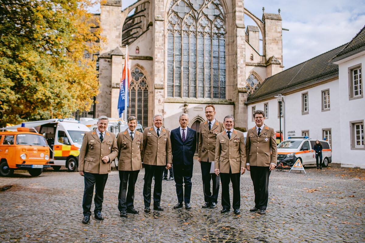 NRW-Innenminister Herbert Reul dankte den Johannitern in seiner wertschätzenden Rede für ihre ungezählten Einsätze in der Corona-Pandemie, bei der Hochwasser-Katastrophe und aktuell bei der Unterbringung und Betreuung von geflüchteten Menschen aus der Ukraine. "Ihre Hilfe ist nicht wegzudenken. Wir sind ihnen unendlich dankbar." Er lobte insbesondere das starke Ehrenamt und die Dynamik, Verlässlichkeit und die Innovationskraft der Johanniter, die mit ihrer Katastrophenschutz-Spezialeinheit „UNIKE“ neue Maßstäbe für Einsätze bei Extremwetterlagen gesetzt hätten. Auch im Namen der Landesregierung dankte er Hans von Tiesenhausen für seinen unermüdlichen Einsatz.