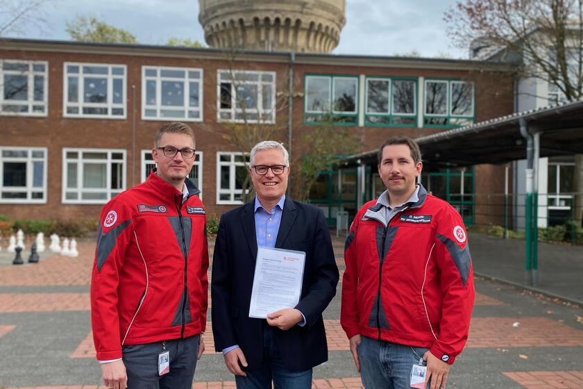 Dirk Heinemann, stellv. Schulleiter freut sich bei der Unterzeichnung des Kooperationsvertrags besonders darüber, dass „die Kinder und Jugendlichen über den Schulsanitätsdienst schon früh mit dem Thema Erste Hilfe in Kontakt kommen, Ängste verlieren, Verantwortung übernehmen und das gewonnene Selbstvertrauen für ihr weiteres Leben mitnehmen“. Die Schule stellt dabei einen separaten Raum für den Schulsanitätsdienst zur Verfügung. Die übrigen Kosten für Material, Notfalltaschen, Erst- und Folge-Schulungen tragen die Johanniter.