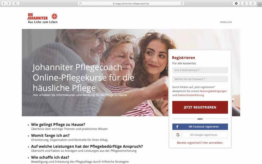 Die Johanniter bieten ab sofort einen weiteren Baustein zur Unterstützung von pflegenden Angehörigen: kostenlose Online-Pflegekurse durch den Johanniter Pflegecoach.