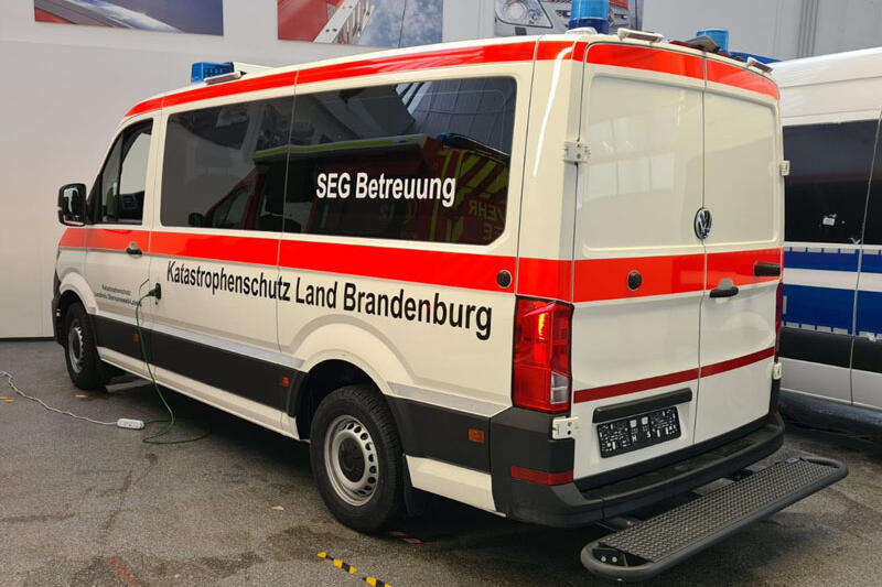 Am 10. Dezember durften wir in Ilmenau bei der BINZ Ambulance- und Umwelttechnik GmbH den neuen Mannschaftstransportwagen (MTW) Betreuung für die SEG (Schnelleinsatzgruppe) in Vetschau/Spreewald (Oberspreewald-Lausitz) abholen. Auf Basis eines VW Crafter erfolgte der umfangreiche Umbau zum modernen Einsatzfahrzeug mit komplexer Technik und einem effizientem Stauraumkonzept. In der Heimat erhält das Fahrzeug jetzt noch die Digitalfunkausstattung und eine ergänzende Beklebung.