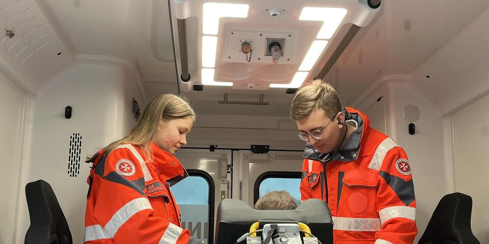 Auch beim Blaulicht gibt es eine Neuerung: Das blinkt nicht nur an der Front, sondern zusätzlich an den Dachseiten des Fahrzeugs. Dadurch ist der Rettungswagen im Einsatz noch besser für andere Verkehrsteilnehmer zu erkennen. „Das ist vor allem wichtig, wenn wir quer auf einer Straße stehen müssen“, sagt Rettungssanitäter Grosch.