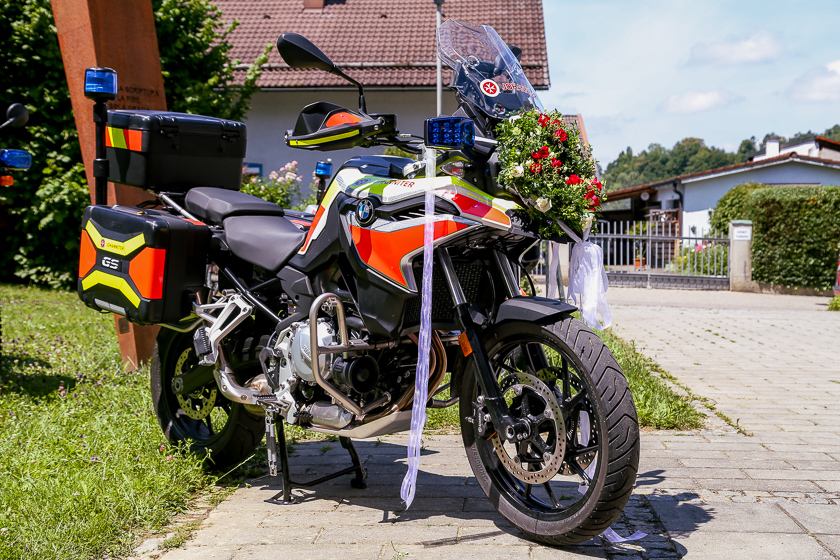 Dass die Hilfsorganisation Spenden umsichtig einsetzt, zeigt auch das neue Einsatzmotorrad. Im Gegensatz zu den beiden bereits vorhandenen Motorrädern, die als gebrauchte Leasingrückläufer von den Feldjägern der Bundeswehr übernommen und umgerüstet wurden, handelt es sich bei der BMW F 750 GS beinahe um ein Neufahrzeug. Produziert wurde die Behördenversion des 77 PS starken Motorrads 2017 für die französische Polizei, fand dann jedoch nicht den Weg ins Nachbarland und konnte jetzt sozusagen als fabrikneues Gebrauchtfahrzeug für rund 9000 Euro von den Johannitern übernommen werden – inklusive der sonst sehr teuren Sondersignalanlage und den Koffern für die medizinische Ausstattung. Der Neupreis liegt etwa doppelt so hoch.