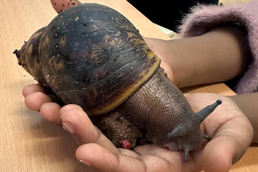 Kinder freuen sich über ihren neuen Schneckenbewohner!
