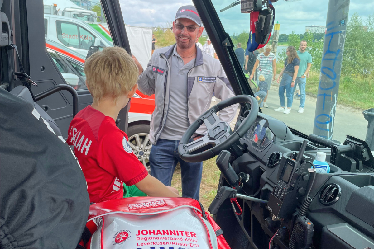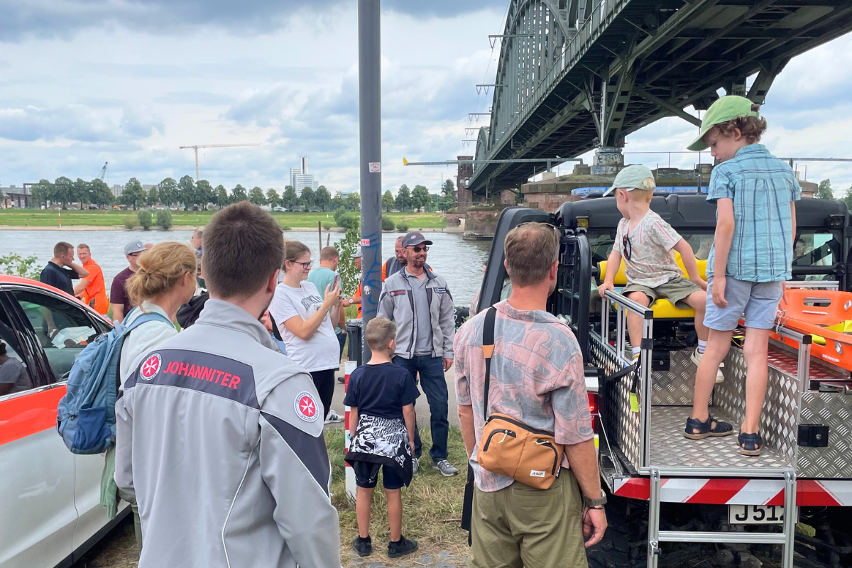 Unter den rund 200 Ausstellenden war auch die Johanniter-Unfall-Hilfe mit einem spannenden Stand auf der Blaulichtmeile am Gustav-Heinemann-Ufer vertreten. Mit vollem Engagement und großer Begeisterung freuten sich die Johanniterinnen und Johanniter vor Ort über zahlreiche Gespräche, Begegnungen und neue Kontakte. So kamen sie auch dem Grundgedanken der Feierlichkeiten nach, durch den NRW-Tag im Gespräch mit den Besuchenden gesellschaftliche Themen wie Demokratie, Vielfalt, Toleranz und Nachhaltigkeit zu beleuchten. Marius Mainzer, Mitglied im Regionalvorstand der Johanniter im Regionalverband Köln/Leverkusen/Rhein-Erft: “Der NRW-Tag in Köln ist für uns von großer Bedeutung. Er bietet uns die ideale Plattform, um unsere Arbeit einem breiten Publikum zu präsentieren und den Menschen zu zeigen, wie wichtig unser Einsatz im Bevölkerungsschutz und in vielen anderen Bereichen ist. Die positive Resonanz bestärkt uns in unserem Engagement.”