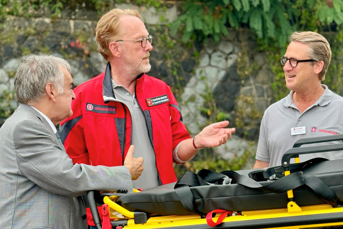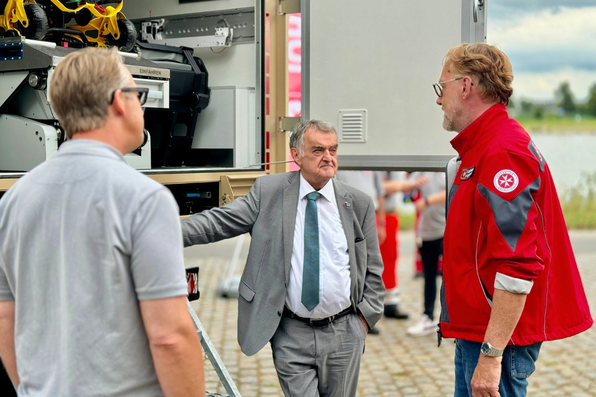 Am Samstag begrüßten Landesvorstand Udo Schröder-Hörster und Regionalvorstand Marius Mainzer aus Köln verschiedene Vertreter der Landesregierung auf dem Stand. Neben Ministerpräsident Hendrik Wüst nahmen sich auch Karl-Josef Laumann, NRW-Minister für Arbeit, Gesundheit und Soziales, und Innenminister Herbert Reul Zeit für Gespräche und Fotos mit den Johannitern.