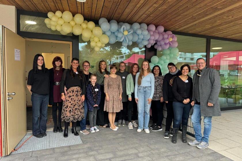 Die Feierlichkeiten begannen mit einem fröhlichen „HalliHallo“-Lied, das von den Kindern vorgetragen wurde. Patricia Dehn, die Leiterin des Kinderhauses, begrüßte die Anwesenden mit einer herzlichen Ansprache: „Seit April hat sich bei uns einiges verändert. Oft werde ich gefragt: ‚Kann denn jeder einfach so offen arbeiten?‘ – Einfach ist es nicht, es braucht drei Faktoren: Die räumlichen Gegebenheiten, die Haltung, die im Haus gelebt wird, und vor allem ein offenes Team. Ich möchte meinem Team ein großes Lob und Danke aussprechen – jeder Einzelne hat dazu beigetragen, dass der ‚Prozess Öffnung‘ ins Rollen gekommen ist.“