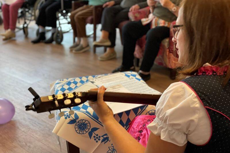 Draußen war es kalt und regnerisch. Doch die Räume der Johanniter-Tagespflege in Branitz glühten. 16 Gäste genossen stimmungsvolle Volksmusik mit Mandy. Die Johanniter-Ergotherapeutin spielte Gitarre. Auch ein ehrenamtlicher Kollege, Lutz, unterstützte das Team. Unsere Mädels trugen Dirndl, was in Kombination mit entsprechender Raumdekoration für das einzigartige bayrische Flair sorgte. Zum Mittagessen gab es natürlich Leberkäse.