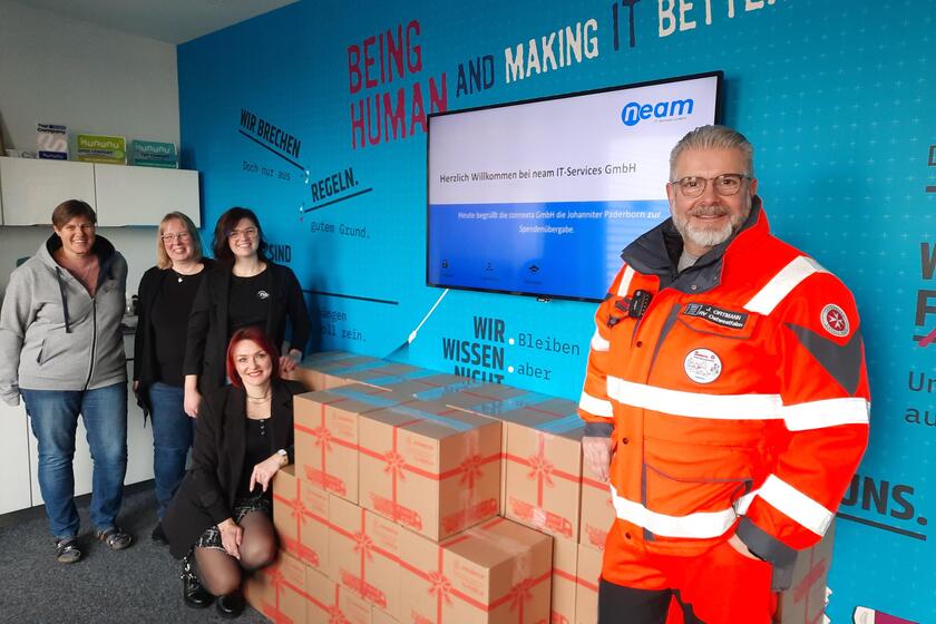 Unterstützt wurde connexta vom eigenen Tochterunternehmen Neam mit Sitz in Paderborn. Hier packte das Verwaltungsteam tatkräftig an und verpackte alle Lebensmittel und Geschenke in die vorgesehenen Kartons.