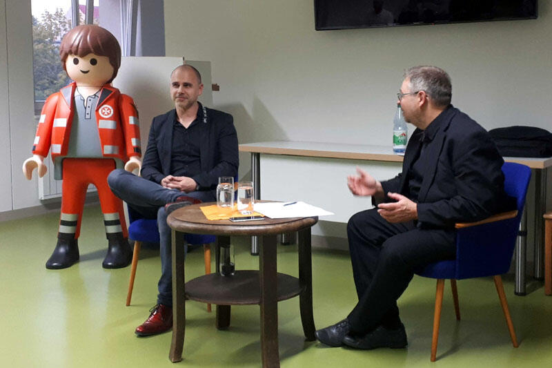 Gestern Abend haben wir eine angeregte Diskussion in einer lockeren Athmosphäre erlebt. Michael Städter von Krüger Medizintechnik und Jens Taschenberger von der Agentur zwei helden plauderten mit dem Publikum mit viel Charme und Humor. Auch der Moderator des Abends, Steffen Kerstin Leiter der Städtischen Sammlungen Cottbus, bescherte die Besucher mit interessanten Geschichten aus der Stadtgeschichte.