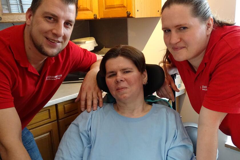 Nach einem Schlaganfall ist Sabine auf Pflege angewiesen. Unser ambulanter Pflegedienst in Cottbus und Umgebung unterstützt sie täglich – mit Fürsorge, Hilfe im Alltag und medizinischer Versorgung.