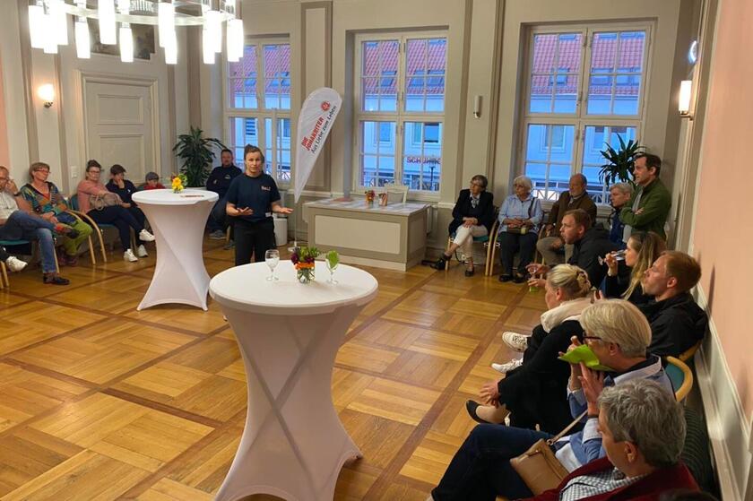 Nahezu 40 Interessierte kamen gestern ins Foyer des Templiner Rathauses, um die Ehrenamtlichen kennenzulernen, die in den neun Podcast-Folgen von "Voll mein Ding - engagiert in Templin" vorgestellt werden. Die Projekt-Schau bebildert die Podcast-Reihe, die auf die Vielfalt und die gesellschaftliche Bedeutung ehrenamtlicher Arbeit in der Region aufmerksam machen. Neben der Johanniterin Julia Krause, die die Initiatorin und Koordinatorin der Podcast-Reihe ist, waren auch die Produzentin der Interviews, Yeri Anarika und der Grafiker Gunther Bürkle vor Ort. Auch die Integrationsbeauftragte der Uckermark, Tamara Gericke, ließ es sich nicht nehmen, an der Eröffnungsveranstaltung teilzunehmen.