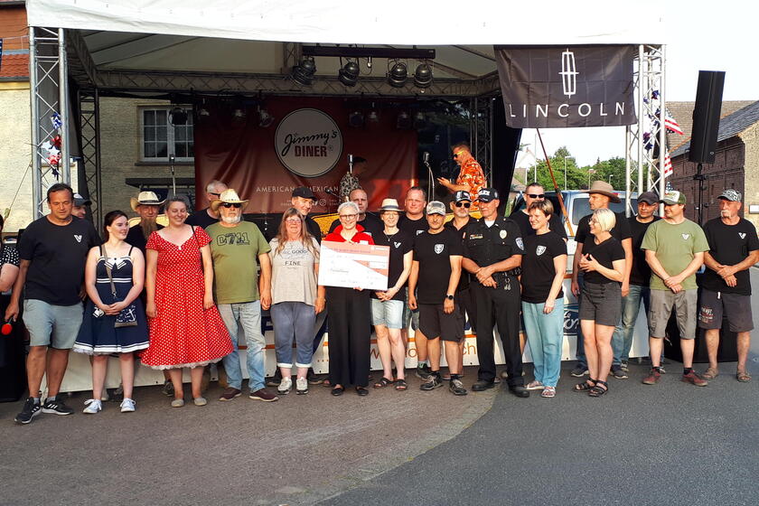 Was passt besser zu einem heißen Wochenende als American Cars auf der Dorfaue und dazu noch große Herzen für einen guten Zweck?