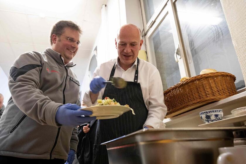 Am Vorabend des Internationalen Tages für die Beseitigung der Armut besuchte der Regierende Bürgermeister Kai Wegner gemeinsam mit der Bezirksbürgermeisterin von Friedrichshain-Kreuzberg Clara Herrmann die Johanniter-Notübernachtung für obdachlose Menschen in der Ohlauer Straße. Beide unterstützten das Team bei der Essensausgabe und tauschten sich dabei mit den Gästen sowie den haupt- und ehrenamtlichen Mitarbeitenden der Notübernachtung aus.