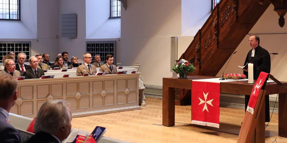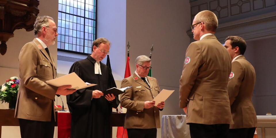 Die Amtseinführung trug die Überschrift „Du stellst meine Füße auf weiten Raum“. Das Motto passt, denn der Verband Rhein-Ruhr erstreckt sich über 112 Kilometer von Düsseldorf bis an den Niederrhein nach Emmerich. Ein großes Anliegen beider Vorstände sei es daher, trotz der räumlichen Distanz das Wir und den starken Teamgedanken unter allen Mitarbeitenden in den Fokus zu rücken. Landesvorstand Matthias Cramer sagte: "Wir sind ausgesprochen froh, euch als Führungskräfte gewonnen zu haben!" Marvin Adels erwiderte: „Es ist mir eine große Ehre und ich bin stolz, diese Aufgabe in der JUH-Familie einnehmen zu können. Ich bin mir sicher, dass wir anstehende Herausforderungen, wie die Fachkräftegewinnung und Reformen im Rettungsdienst, gemeinsam angehen und meistern werden.“