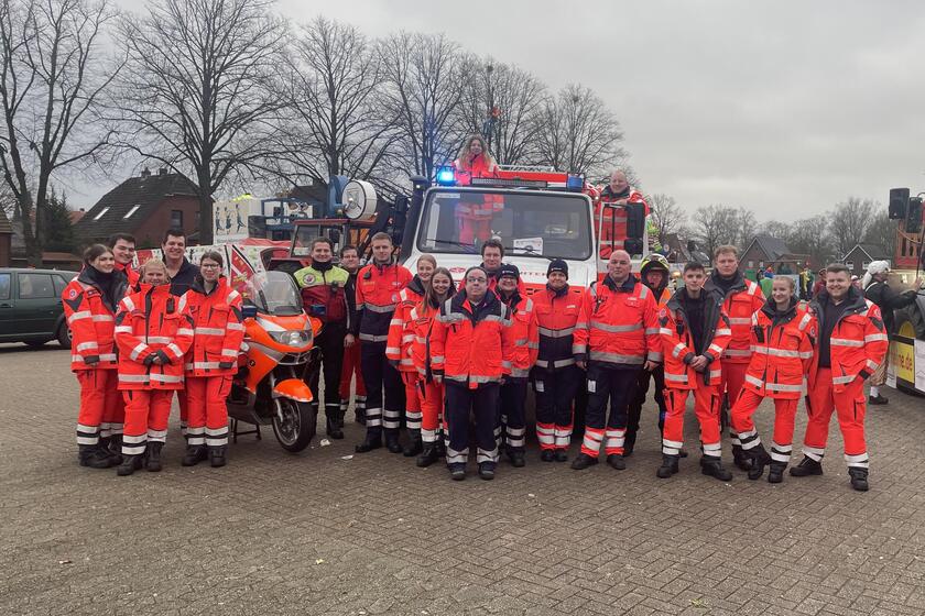 Pünktlich um 14:11 Uhr startete der alljährliche Rosenmontagsumzug vom Elisabeth-Platz in Rheine. Die Johanniter sorgen in jedem Jahr mit viele ehrenamtliche Einsatzkräfte für die medizinische Sicherheit der Veranstaltung.