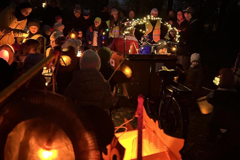Mit dabei war natürlich auch der Ritter St. Martin - nicht auf einem Pferd sondern im geschmückten Lastenrad der Biberbande, das den Zug anführte. Nach dem Laternenumzug klang der Abend in der Biberbande mit Kinderpunsch, Glühwein und einem warmen Snack gemütlich aus.