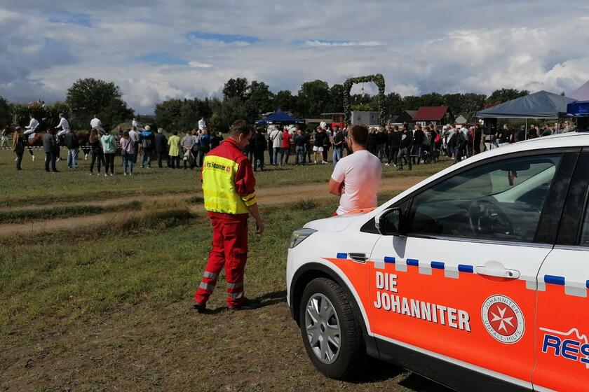 Vor allem an den Wochenenden sind die Johanniter bei zahlreichen Sanitätsdiensten im Einsatz. So z.B. am 29. August 2021 beim sorbische/wendischen Brauch, dem Hahnrupfen in Werben im Spreewald.