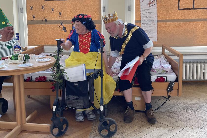 Stürmischen Applaus gab es im Johanniterhaus Johann Sebastian Bach für Schneewittchen und ihre sieben Zwerge. Mit eigenen Textinterpretationen wurde von elf Bewohnerinnen und Bewohnern das Stück "Schneewittchen und die sieben Zwerge" vor voll besetztem Haus aufgeführt. Die Laienschauspieler, im Alter von 70 bis 92 Jahren, hatten zwölf Wochen lang geprobt und Texte gelernt, um ihr Publikum schließlich vollends begeistern zu können. Kurz vor der Aufführung wurde sogar 3x pro Woche geprobt.