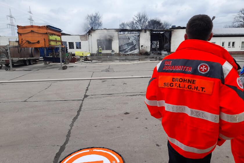 Nach Anforderung durch die Einsatzleitung war unsere SEG F.L.I.G.H.T. vor Ort, um per Drohne mit Wärmebildkameras nach Glutnestern zu suchen, die im Anschluss gezielt abgelöscht werden konnten. Auch wenn die beiden Gebäude nicht mehr zu retten waren, konnten wir durch unseren Einsatz beitragen, Schlimmeres zu verhindern.