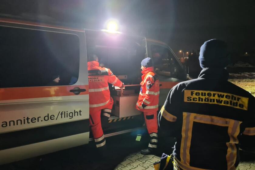 Heute in den frühen Morgenstunden wurden unsere ehrenamtlichen Helferinnen und Helfer von der Polizei Brandenburg zur Unterstützung bei einer Personensuche angefordert, die ihre Ursache in einem Verkehrsunfall in der Freiwalder Hauptstraße hatte: Zeugen hatten kurz nach 2.00 Uhr gemeldet, dass ein Kleinwagen gegen eine Grundstücksumzäunung gestoßen und unmittelbar darauf ein Brand im Motorraum ausgebrochen war. Beim Eintreffen der Feuerwehr stand das Fahrzeug bereits in Vollbrand, vom Fahrer fehlte jedoch jede Spur. Da nicht ausgeschlossen werden konnte, dass er verletzt sein könnte, wurden umfangreiche Fahndungsmaßnahmen ausgelöst, bei denen u.a. unsere Drohnenstaffel zum Einsatz kam. Durch die Wärmebildkamera unserer Drohne konnte der 23-Jährige schließlich gefunden werden, er wurde zur Untersuchung und medizinischen Versorgung ins Krankenhaus gebracht. Quelle (Text): Medieninformation der Polizeidirektion Süd