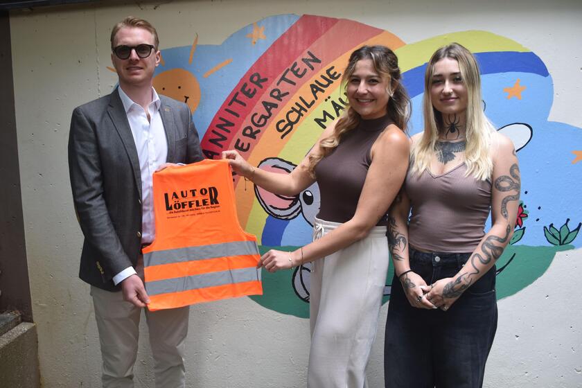 Das Autohaus Löffler unterstützt die Johanniter-Kita Schlaue Mäuse mit 100 Kinder-Warnwesten