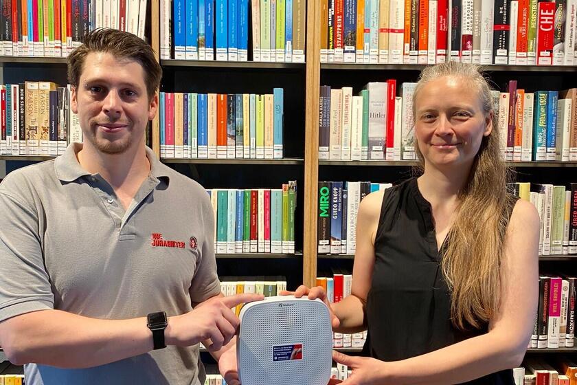 Der Johanniter-Hausnotruf garantiert Sicherheit rund um die Uhr. Da die Stadtteilbücherei Hubland nicht zu allen Öffnungszeiten personell besetzt ist, wurde nun auch die barrierefreie Toilette mit einer Basistation und zwei Zugschaltern der Johanniter ausgestattet, sodass im Notfall schnellstmöglich Hilfe zum Einsatzort gelangen kann.