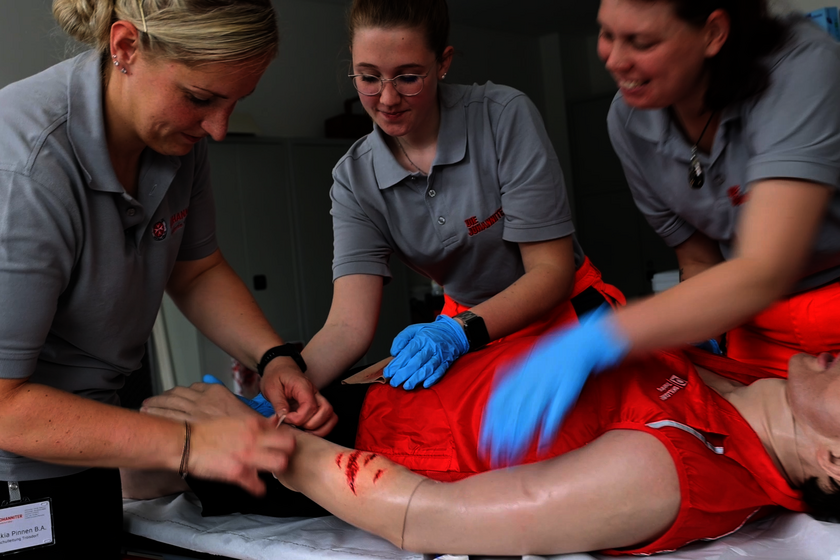 „Im Notfall muss jeder Handgriff sitzen, darum ist es wichtig, sich auf verschiedenste Notfallsituationen vorzubereiten und diese immer wieder zu üben. Das klappt am besten, wenn auch die Unfallsituation möglichst realistisch dargestellt wird“, ist sich Saskia Pinnen sicher. Für die Ausbildung im Rettungsdienst und in der Pflege hat die Johanniter Akademie NRW an allen Standorten die sogenannten Simbodies der Firma Skillqube angeschafft.