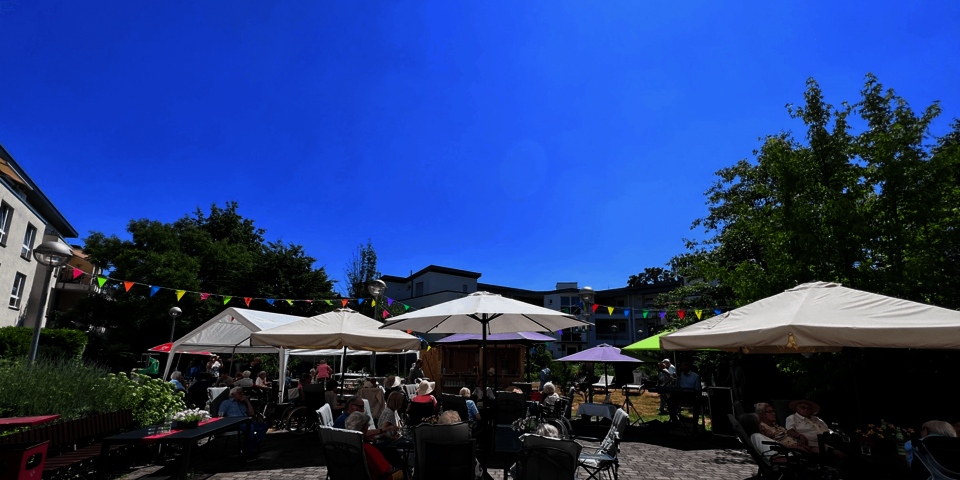 Die allerwichtigste „Zutat“ passte an diesem Samstagnachmittag perfekt: Das Wetter war großartig und verwöhnte alle Anwesenden mit strahlendem Sonnenschein bei hochsommerlichen Temperaturen. Zur guten Stimmung trug aber auch Guido Goodrigde bei – er spielte trotz großer Hitze den ganzen Nachmittag Schnulzen, Schlager und beliebteste Hits. Ganz Profi, präsentierte er textsicher sämtliche Musikwünsche der Bewohnerschaft und besang das schöne Leben in allen Facetten.
