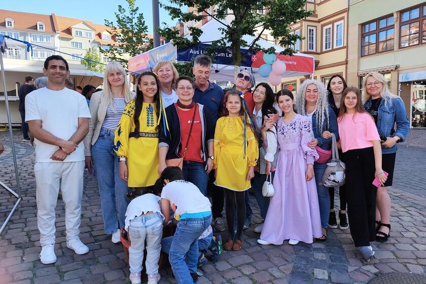 Am 15. Juni 2024 fand auf dem Gothaer Hauptmarkt ein buntes und lebendiges Sommerfest der Johanniter Servicestelle Integration statt, um den Tag der offenen Gesellschaft zu feiern. Dieses Fest wurde gemeinsam mit unseren neu zugewanderten Mitbürgern organisiert und bot eine Vielzahl von Aktivitäten und kulinarischen Genüssen aus aller Welt.