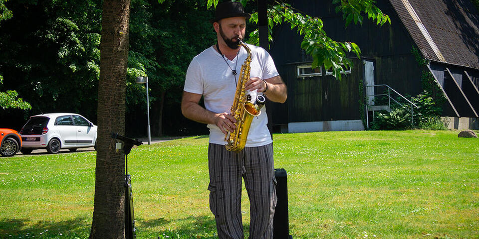 Für das leibliche Wohl war natürlich ebenfalls bestens gesorgt: Es gab erfrischende Cocktails, hausgemachten Kuchen, saftige Bratwürste und andere Leckereien. Kinder konnten sich auf vielfältige Spiele freuen, die für Spaß und Unterhaltung sorgten. Außerdem boten wir neben einem Bücher- und Sockenmarkt, entspannende Handmassage und Klangschalen an, bei denen man die Seele baumeln lassen konnte. Musikalisch untermalt wurde das Fest von Saxophonspieler Chris Kawa, dessen Melodien für eine angenehme Atmosphäre sorgten und unserem ehrenamtlichen Hospizchor. Zudem präsentierten die Lichtbildner Berne beeindruckende Fotografien, die in eine andere Welt entführten und zum Staunen anregten.