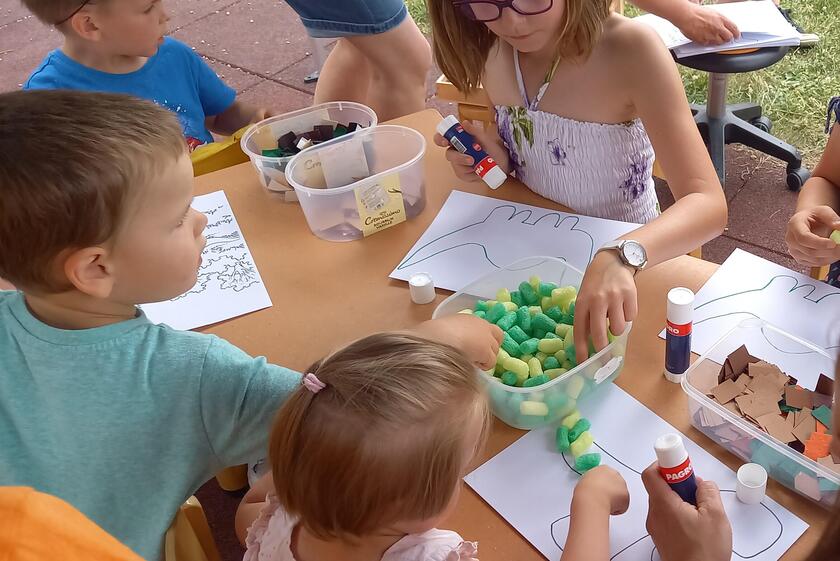 Die Kinder und Erzieher der Kita „Rhöner Kindernest“ feierten am 17.06.22 nach mehrjähriger Pause endlich das langgeplante Familien Dino Sommerfest; bei strahlendem Sonnenschein und mit vielen Gästen. Das Fest bildete den Abschluss eines Projektes, bei dem sich die Kinder mit allem Wissenswerten zum Thema Dinosaurier beschäftigten. Auf Wunsch der Kinder wurde dieses Thema aufgegriffen und so konnten die neugewonnenen Erkenntnisse mit eingebunden werden. Im Angebot waren ein Geschicklichkeitsparcour mit Dinofüßen, kreatives Gestalten von Dinosauriern und eine Tattooecke, die durch die Erzieher begleitet wurden.
