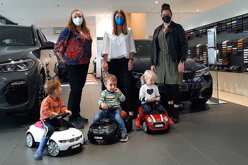 Mit zwei BMW und einen Mini als Rutschauto unterstützt das Autohaus Richard Wagner das Johanniter-Haus für Kinder in Kirchseeon. Die drei Fahrzeuge mit einem Gesamtwert von rund 330 Euro kommen im Bewegungsparcours im Inneren des neuen Hauses zum Einsatz.