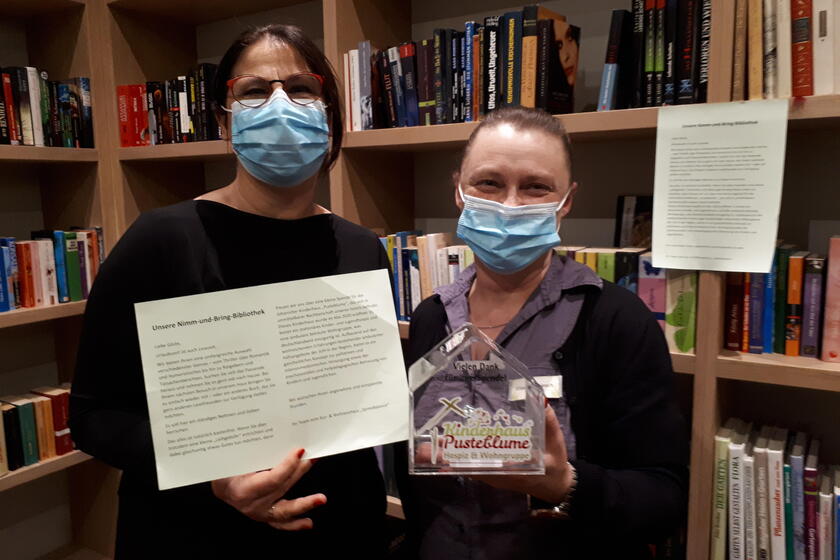 Diese zwei strahlenden Augenpaare gehören zu Antje Kollasch und Claudia Kliesch aus dem Burger Kur-und Wellness-Haus "SpreeBalance". In der hauseigenen "Nimm-und-Bring-Bibliothek" für ihre Gäste kann man für das eigene Lesevergnügen kostenlos Bücher ausleihen - oder aber als symbolische Leihgebühr eine Spende für das Kinderhaus Pusteblume entrichten. Heute konnten wir aus dieser tollen Idee 114,62 Euro entgegennehmen. Dass Lesen nicht nur bildet, sondern auch Gutes tun kann - das sagen wir hiermit gerne weiter und bedanken uns ganz herzlich dafür!
