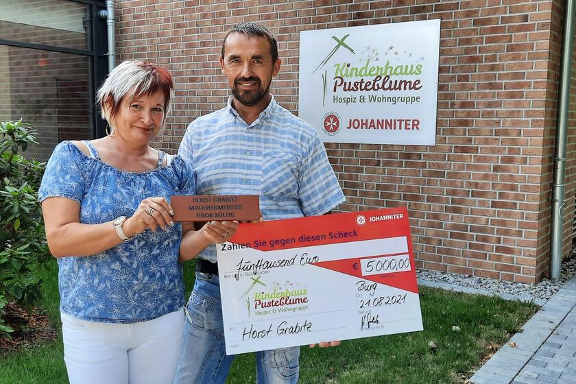 Horst Grabitz und seine Frau haben ihren Spendenstein im Kinderhaus Pusteblume besichtigt.