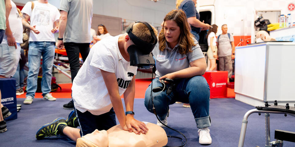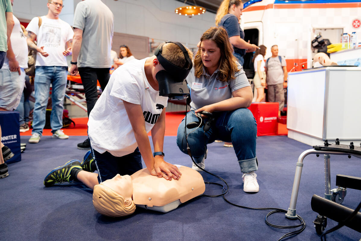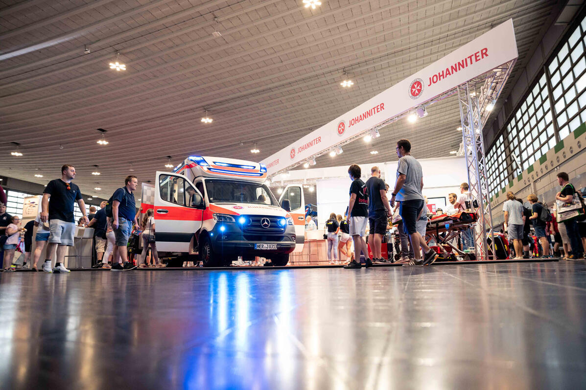 Beim Messeauftritt der Johanniter gab es einiges zu sehen: Reanimation per VR-Brille etwa, die Fahrzeugschau der Spezialeinheit UNIKE, das innovative Pilotprojekt zur Einsatzstellenhygiene oder auch Innenminister Herbert Reul im Fahrsimulator.