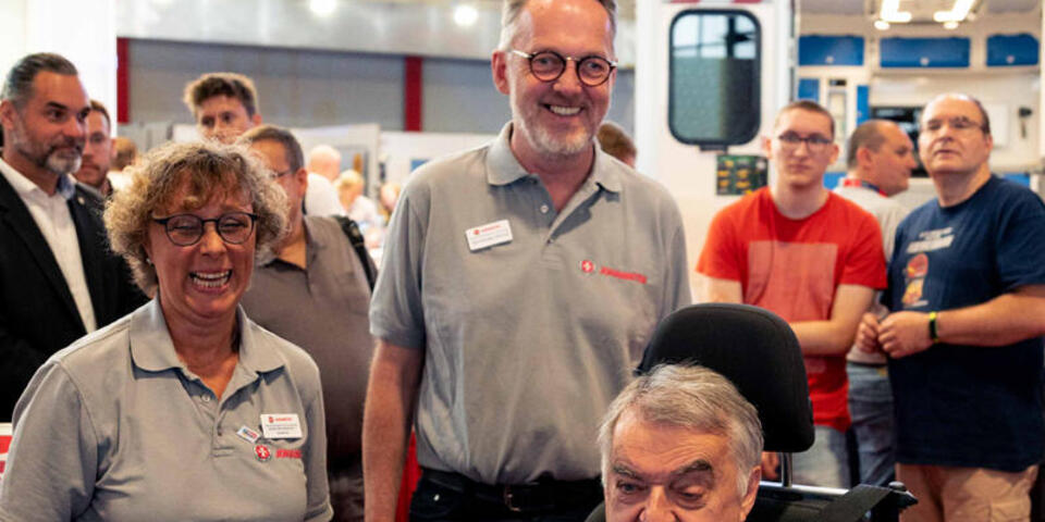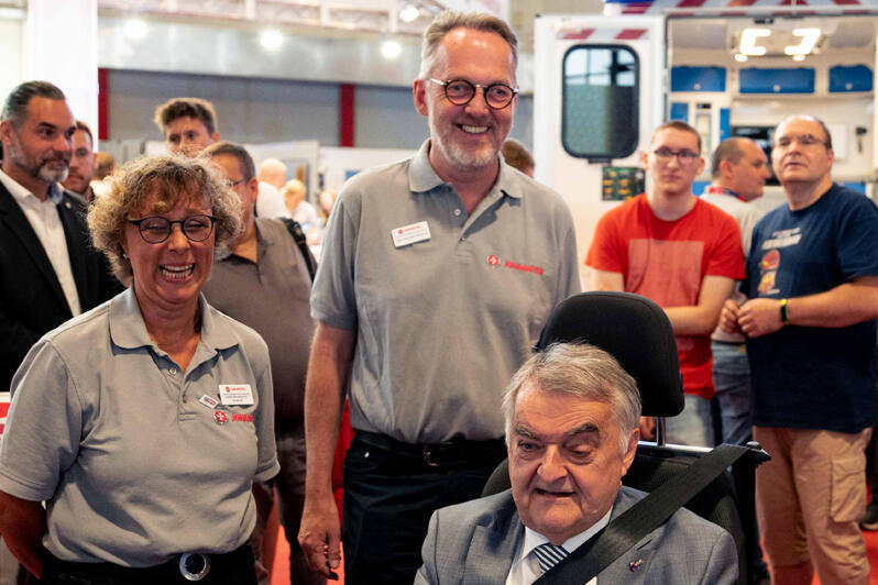 Ein Höhepunkt der Messe war der Besuch von NRW-Innenminister Herbert Reul am Johanniter-Stand, der am Fahrsimulator einen RTW unfallfrei durch ein Schneegestöber steuerte. "Ein gutes Zusammenspiel von Brandschutz, Rettungswesen, Katastrophen- und Bevölkerungsschutz ist im Ernstfall entscheidend. Nicht die Technik rettet Leben, sondern Menschen retten Leben", sagte Reul, dessen Ministerium des Innern gemeinsam mit dem Ministerium für Arbeit, Gesundheit und Soziales auch die Schirmherrschaft der Messe innehatte.
