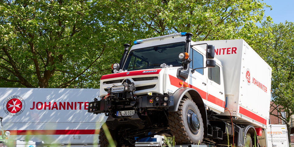 Bei der Premiere der Messe 112 Rescue haben die Johanniter aus NRW einen starken Auftritt hingelegt: Mit einem großen, viel besuchten Innenstand mit Virtual-Reality-Reanimation und RTW-Fahrsimulator. Mit der spektakulären UNIKE-Fahrzeugdemonstration im Außenbereich. Mit einer echten Katastrophenschutz-Innovation wie der Präsentation des Geräteanhängers für Einsatzstellenhygiene. Und mit 60 kompetenten, gutgelaunten Johanniterinnen und Johannitern im Messe-Team, die über 5.000 Wasserflaschen, 600 Kugelschreiber und 20 Kilo Bonbons an die Besucherinnen und Besucher verteilten.