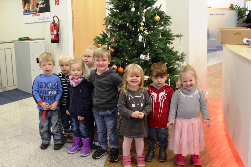 Kinder der Johanniter-Kita schmücken Baum der Volksbank Schlangen